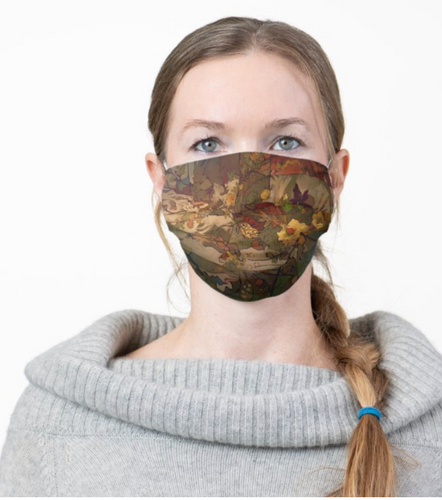 "Abstract Autumn Botanical" Mock Neck Chiffon Sleeveless Blouse