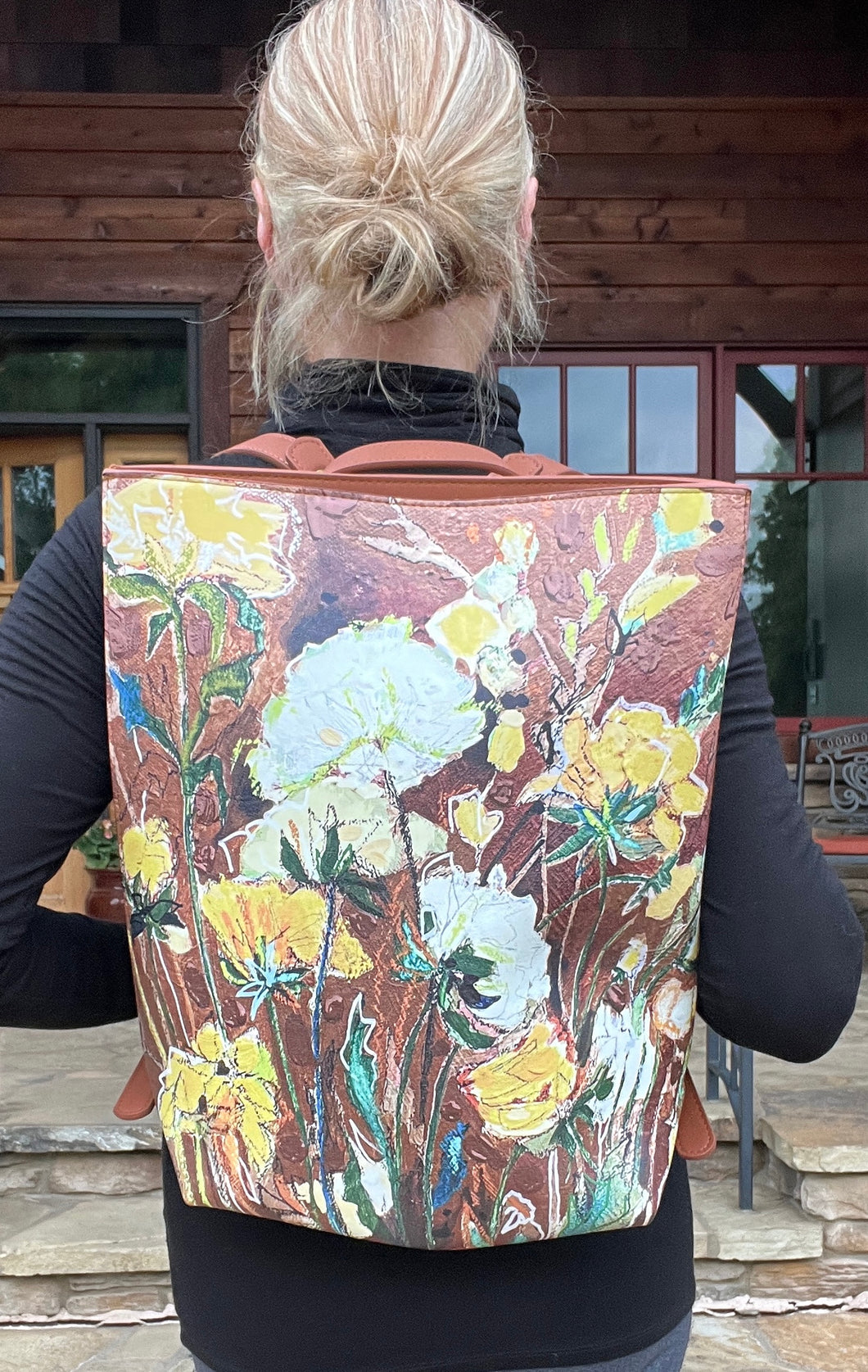 "Golden Ranunculus" Envy-Worthy Vegan Leather Backpack