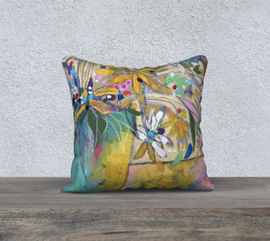 NEW!! 18x18 inch "Pink and Yellow Ranunculus" Velvet Artisan Accent Pillow Case